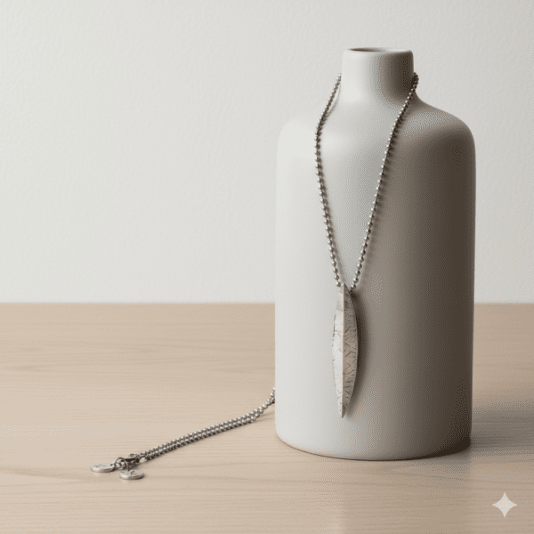 Descubre la elegancia atemporal del Collar Botánica de la colección Katarsis, una pieza diseñada para quienes buscan equilibrar la fuerza del metal con la delicadeza de la naturaleza. Este accesorio destaca por su colgante estilizado en forma de hoja, cuyo acabado texturizado captura la luz de manera única, aportando un toque distintivo y moderno a cualquier look. Su diseño vertical y limpio no solo es visualmente atractivo, sino que logra alargar la silueta con una sofisticación sin esfuerzo, convirtiéndose en el complemento perfecto tanto para el día a día como para ocasiones especiales.