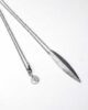 El colgante cuenta con un baño en plata, mientras que la cadena, está fabricada íntegramente en acero inoxidable. Gracias a su longitud de unos 60 cm aproximadamente, el collar reposa elegantemente arriba del pecho, permitiendo una gran versatilidad para lucirlo sobre prendas de cuello alto o escotes abiertos.