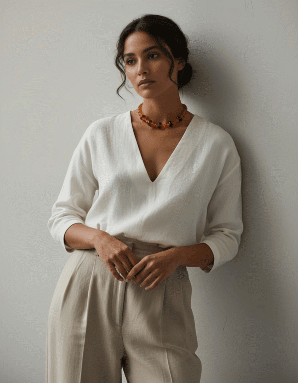 El diseño corto del collar lo hace perfecto para realzar escotes o combinarlo con otras piezas de diferentes largos. Su tono ámbar combina con prendas claras o de tonos tierra, aportando un toque cálido y natural a cualquier look. Es una joya versátil, ideal tanto para el día a día como para una ocasión especial.