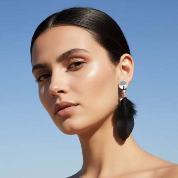 Sutiles, modernos y con carácter propio. Estos pendientes bañados en plata combinan la fuerza del metal con la ligereza de la pluma negra, creando un diseño asimétrico que no pasa desapercibido.